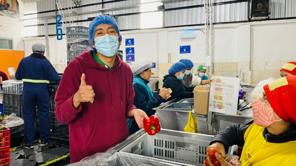 Second, two SWYAA Ecuador members (President and Vice-president) participated in on-site volunteering day to help collecting food donations in the largest wholesale market in Quito, and sorted and organized the donated food in good conditions for consumption.